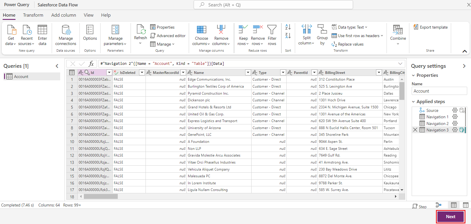 - On the query editing screen, if no column conversion is needed, you can skip this step and proceed by clicking on Next.
