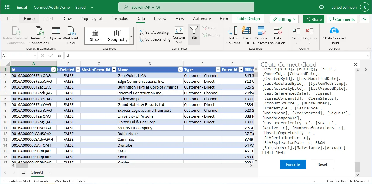 This setup requires a CData Connect Cloud instance and the CData Connect Cloud Add-In for Excel. To get started, sign up a free trial of Connect Cloud and install the free Connect Cloud Excel Add-In.