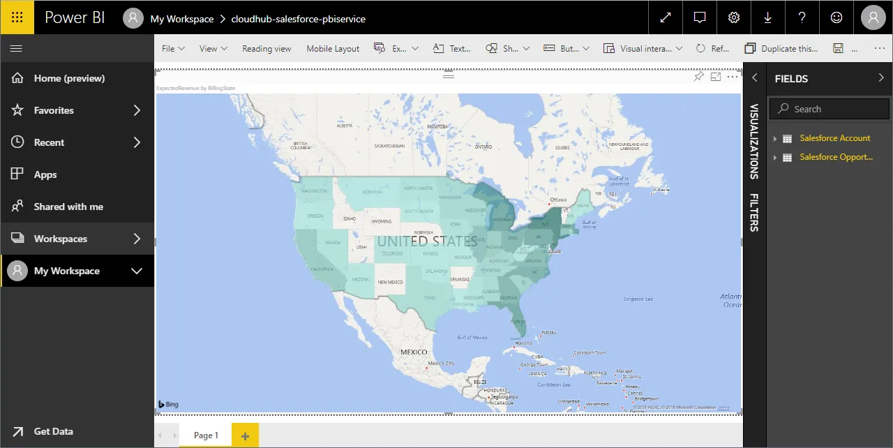Now that you have published a dataset to the Power BI service, you can create new reports and dashboards based on the published data: