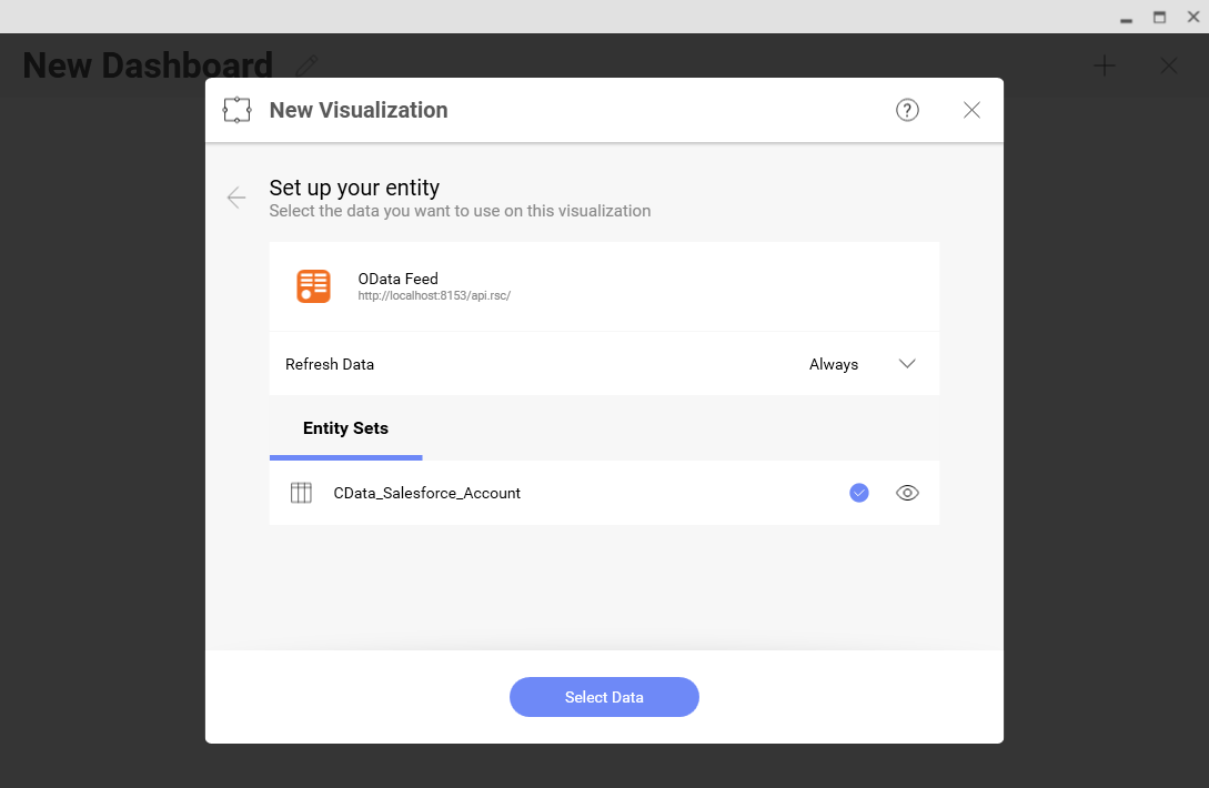 Use the CData API Server to create an OData API on top of WordPress data and visualize live WordPress data in Ingragistics Reveal.