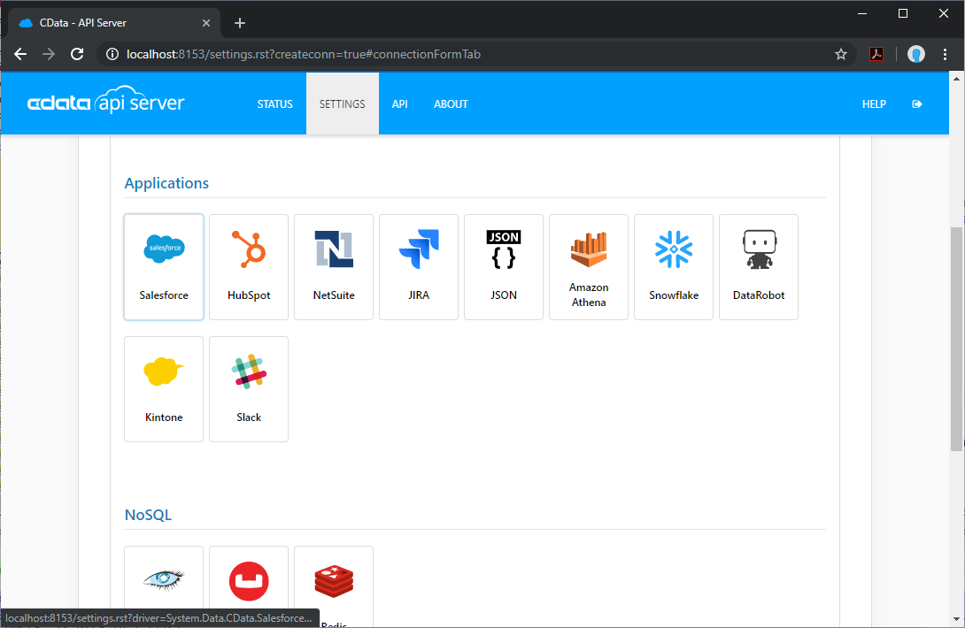 CData API Server uses a straightforward, point-and-click interface to connect to data sources and generate APIs.