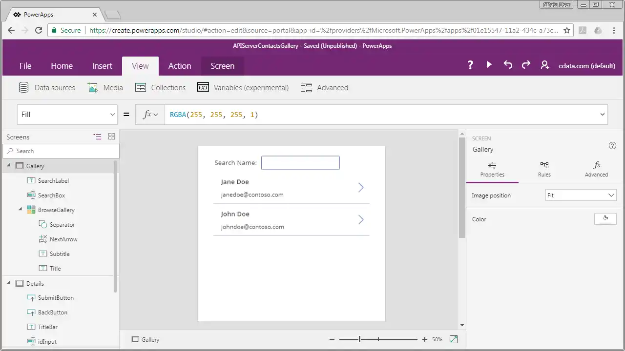 Follow the steps below to create a simple app that can search WordPress data. You will use Power Apps formulas to bind WordPress rows to rows in a gallery control.
