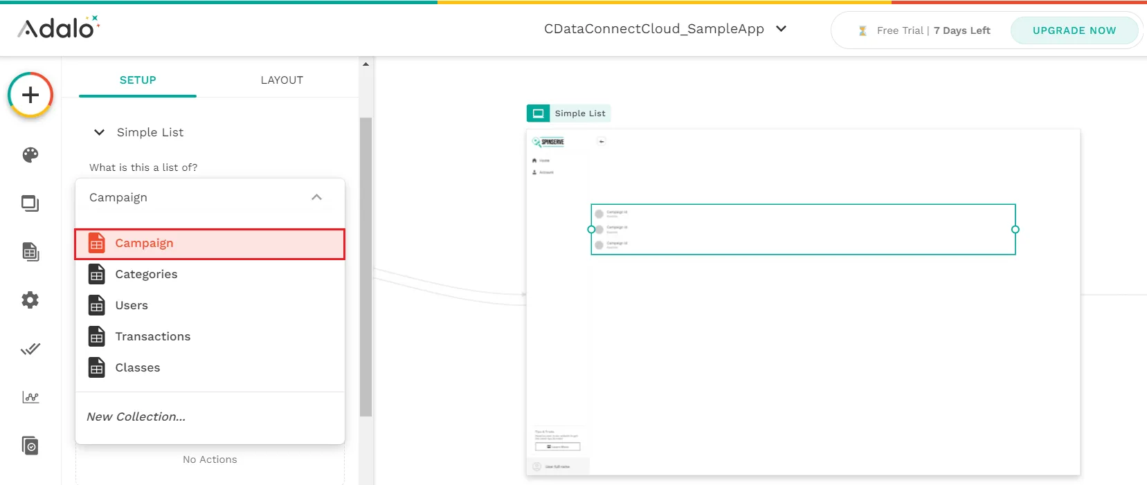 Adalo uses a data structure called Collection to manage app data and offers a feature called External Collections with APIs, which lets you seamlessly integrate Collection with external APIs. Use this feature to connect to Connect Cloud.