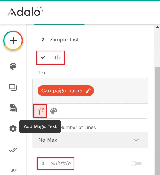 - Click on "Add Magic Text" button (as shown) to add the "Title" and "Subtitle" to the data items you want to obtain.