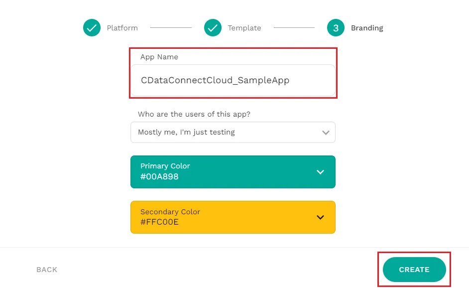 - Finally, add an app name and choose a color scheme, and your app is ready to go!